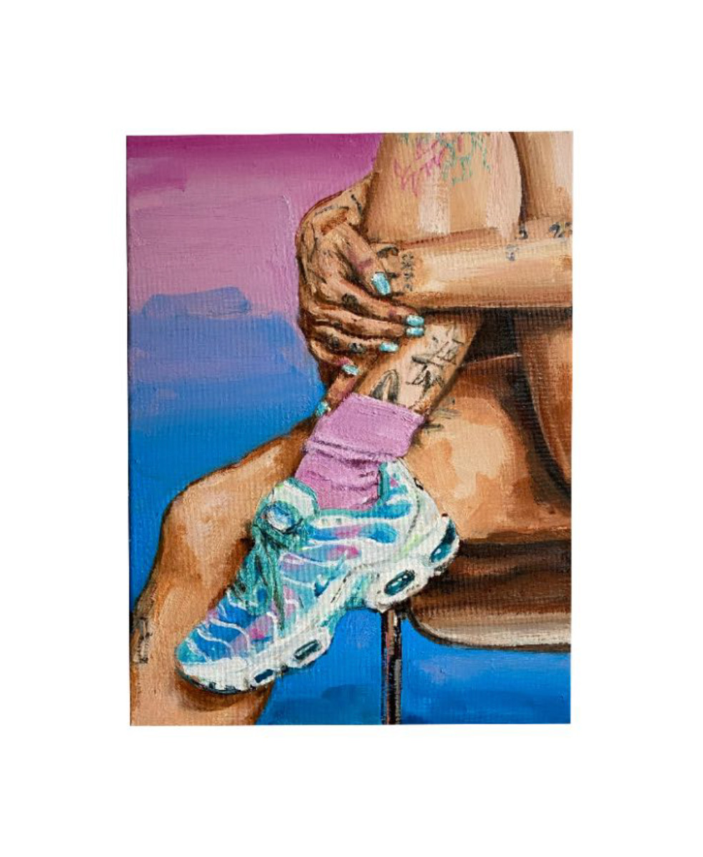 En estos bloques nos encontraremos con retratos de figuras destacadas que Castillo se ha ido cruzando a lo largo de la última década en las diversas escenas artísticas del underground en lugares como Paris, Leipzig, Cape Town, o incluso Málaga. A través de sus pinturas la artista sitúa a estos personajes en escenas utópicas y hedonistas donde el color ofrece un significado de acuerdo con los lenguajes visuales de la generación Z. Considera que sus pinturas de retratos están terminadas cuando la mirada de sus protagonistas es convincente para ella. Encontraremos elementos estéticos revival de los 90 que esta nueva generación reutiliza no sólo a la hora de resignificarlos; la artista nos dirige de esta forma a una reflexión sobre una generación que busca en códigos estéticos previos su propia identidad, o incluso proponen reusarlos para apropiársela, como si de alguna forma la cuestión de upcycling (reciclado de ropa) fuese insigne de los Gen Z.