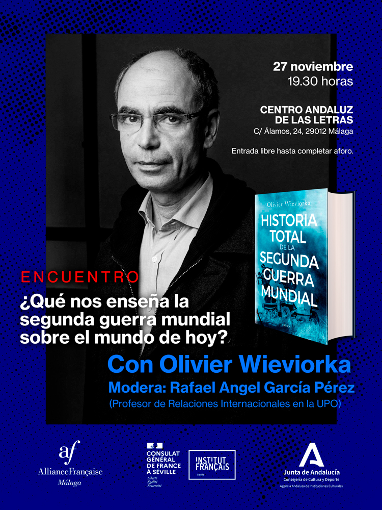 Olivier Wieviorka presentará su obra ‘Historia total de la Segunda Guerra Mundial’ (ed. Crítica) en el Centro Andaluz de las Letras de Málaga el 27 de noviembre a las 19h30. Una reflexión sobre las raíces del conflicto y las lecciones que ofrece a las democracias ante las crisis actuales. La conversación será moderada por Rafael Angel García Pérez, Catedrático de Historia de la Universidad Pablo de Olavide de Sevilla.