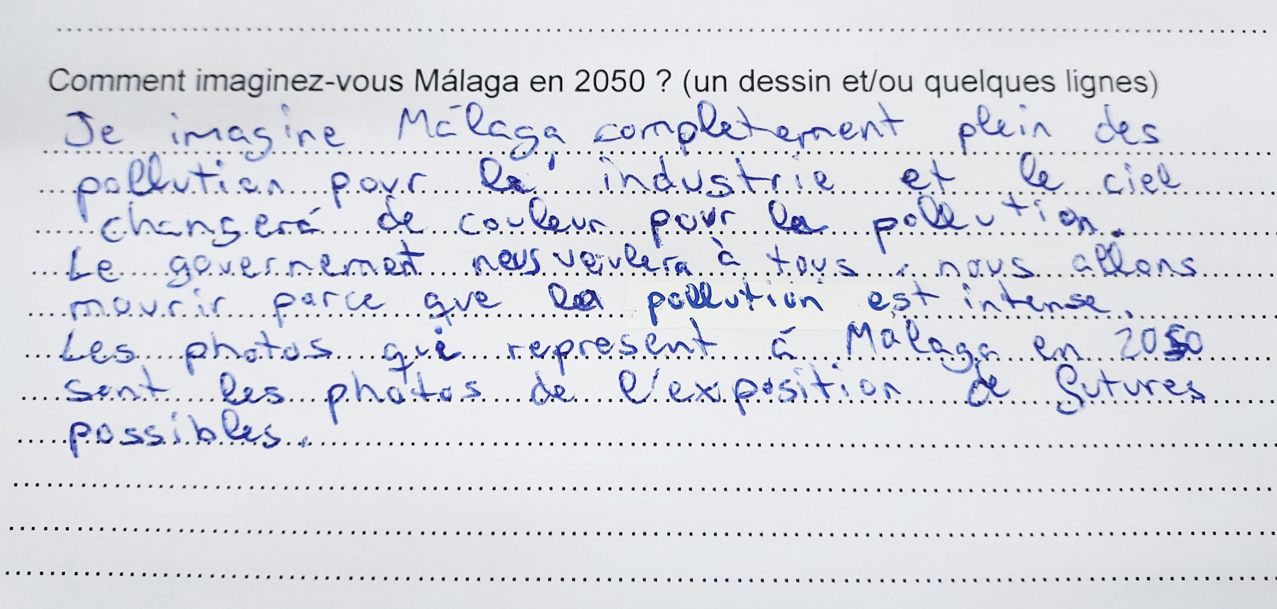 Parte del trabajo de mediación suponía plantear a los visitantes (niños y adolescentes) imaginar cómo podría ser la ciudad de Málaga en 2050, teniendo en cuenta las distintas cuestiones que el cambio climático plantea.