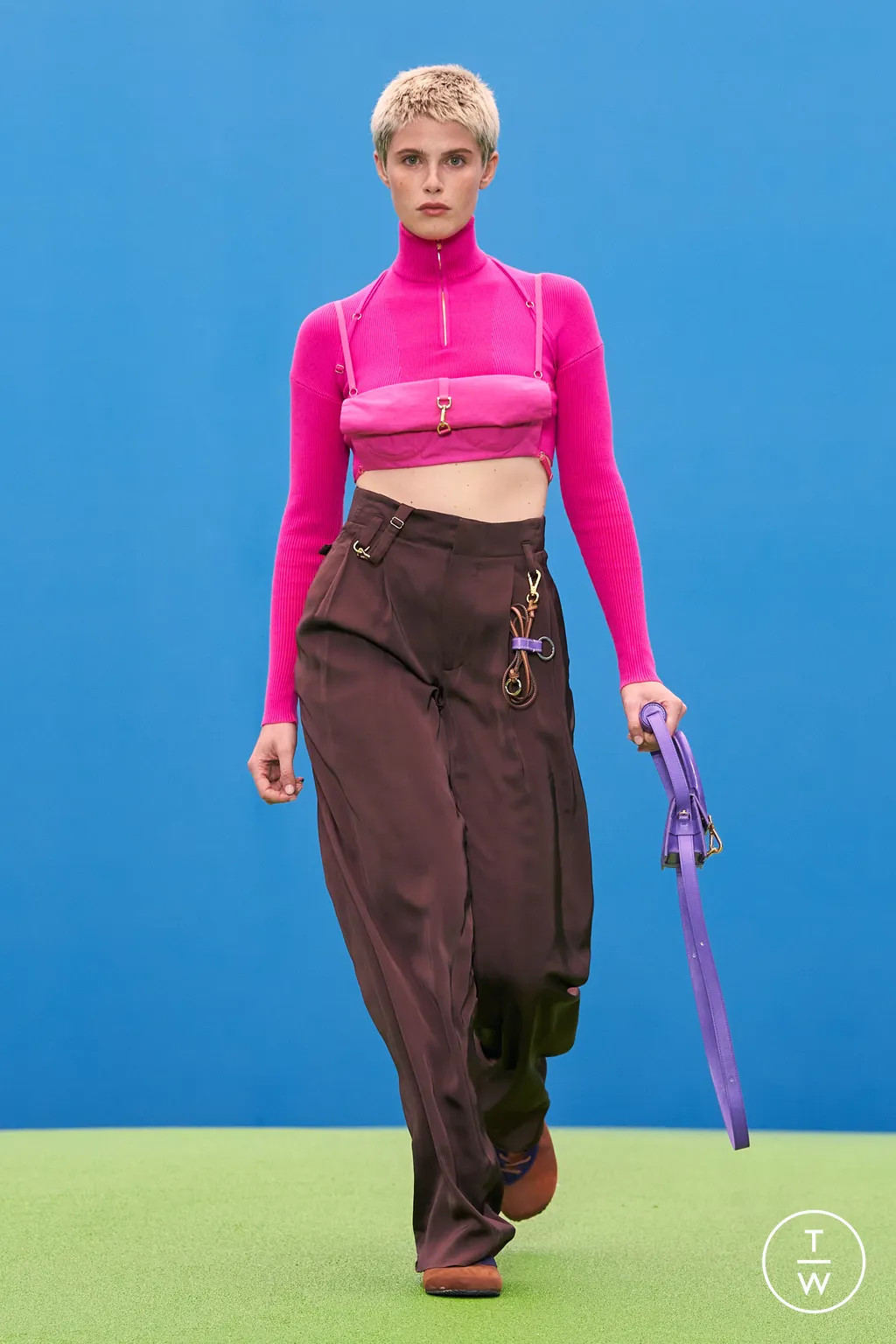 La marca Jacquemus se caracteriza por fusionar la estética provenzal con un estilo minimalista y moderno. Sus colecciones, que a menudo incluyen colores vibrantes, cortes asimétricos y piezas oversized, han sido elogiadas por su frescura y elegancia simple. Además, sus desfiles son conocidos por sus escenarios naturales, como campos de lavanda, playas o paisajes bucólicos, que se convierten en parte integral de la narrativa de la marca. El desfile en los campos de lavanda en 2019, por ejemplo, fue un hito en la carrera de Jacquemus, al igual que su reciente show en el Palacio de Versalles, que elevó aún más su estatus en la industria.